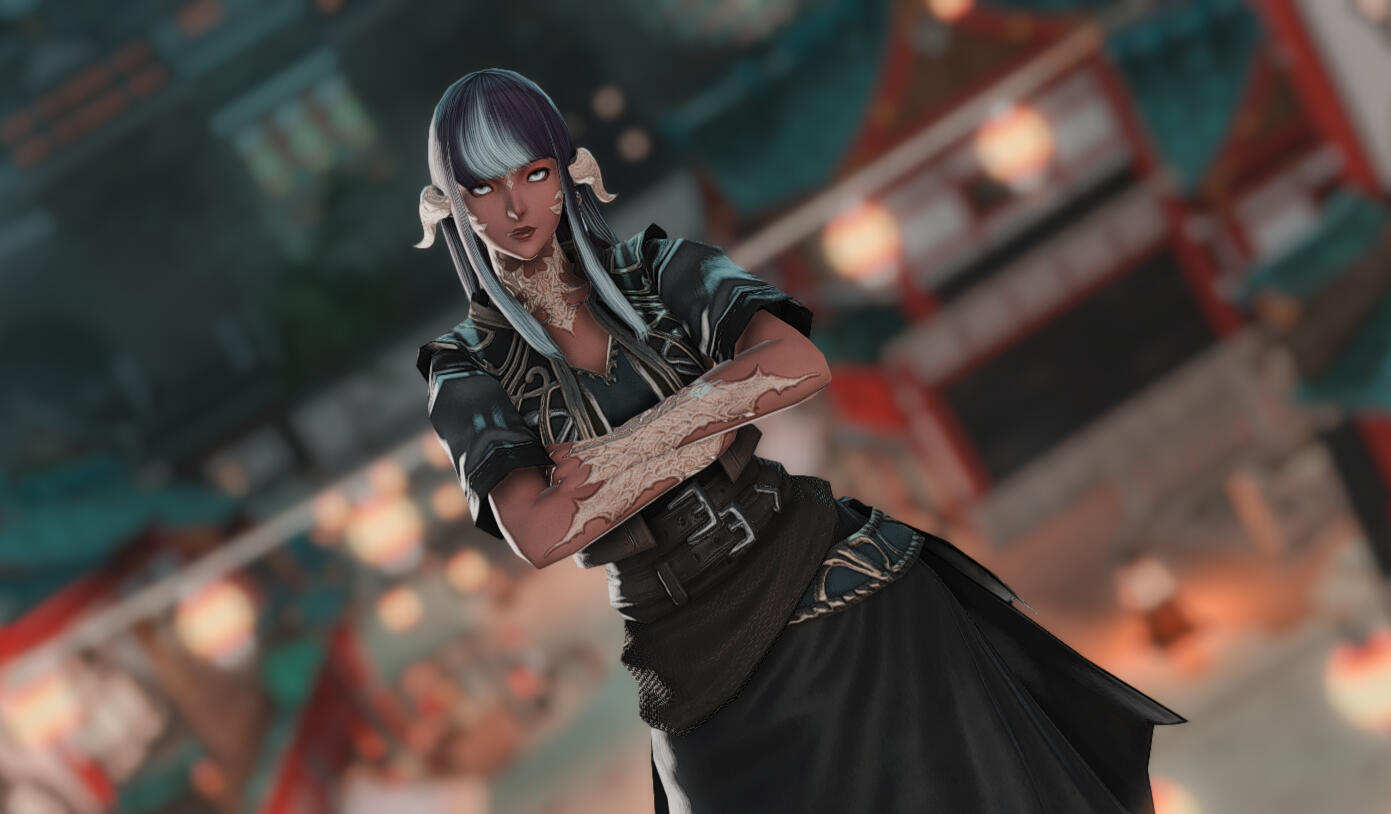 Kanna works as hired muscle for several smuggling operations based out of Kugane. These trips range from the Ruby Sea all the way to Thavnair and Limsa Lominsa. Are you one of her contacts, or just someone she's run into on her travels?Vice