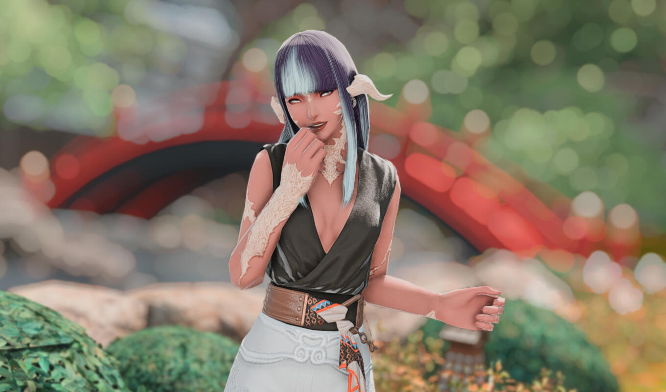 Player is over 30. I'm not interested in roleplaying with people under 21.I'm interested in both short/pick-up roleplay and longer storylines. I prefer Discord for more indepth storylines, but am happy to schedule something in game. Kanna is an alt, so it's easier to get in touch with me via Discord to plan sessions. (Ask for my username via /tell if you need it.)Romance plots are welcome, but require development. ERP is fine, but I'd prefer it to be part of a plot rather than a one-off.Dark and mature themes are welcome, but require some OOC communication so we're on the same page with regard to goals.
